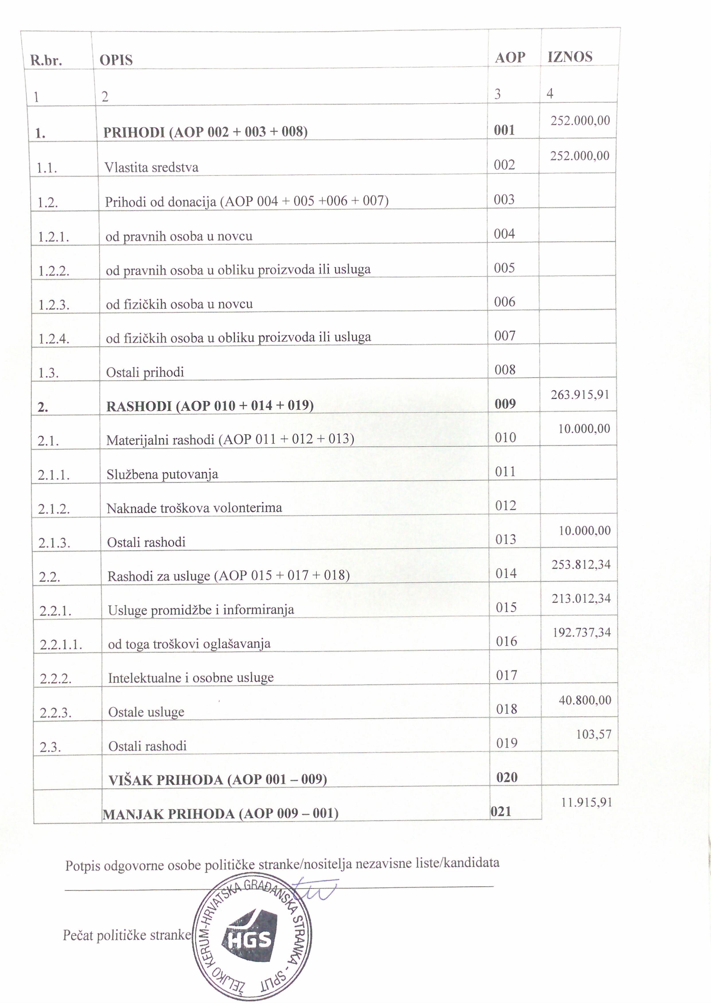 Financijski izvještaj o financiranju izborne promidžbe u razdoblju od 21.10.2015. do 6.11.2015.
